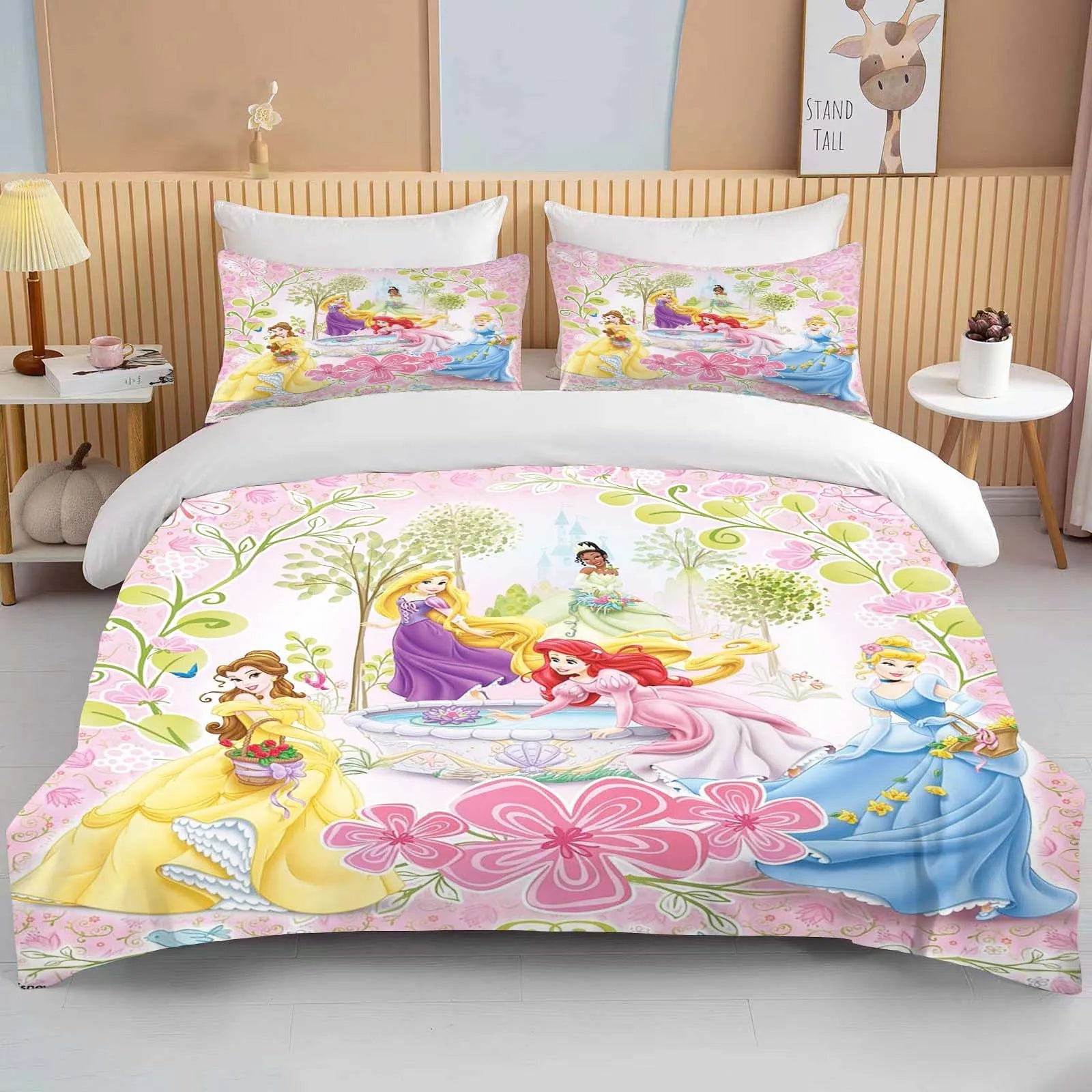 10 Sizes Disney Princess Printed Bedding Set Cartoon Anime Microfiber Bed Set Pillowcase Adult Bed Cover Bedroom Bed Set Duvet