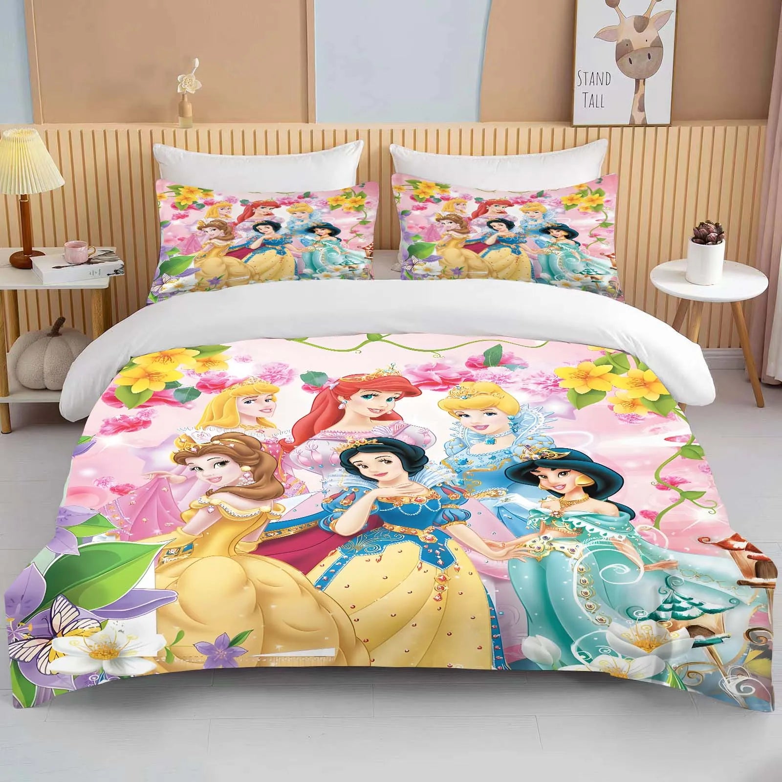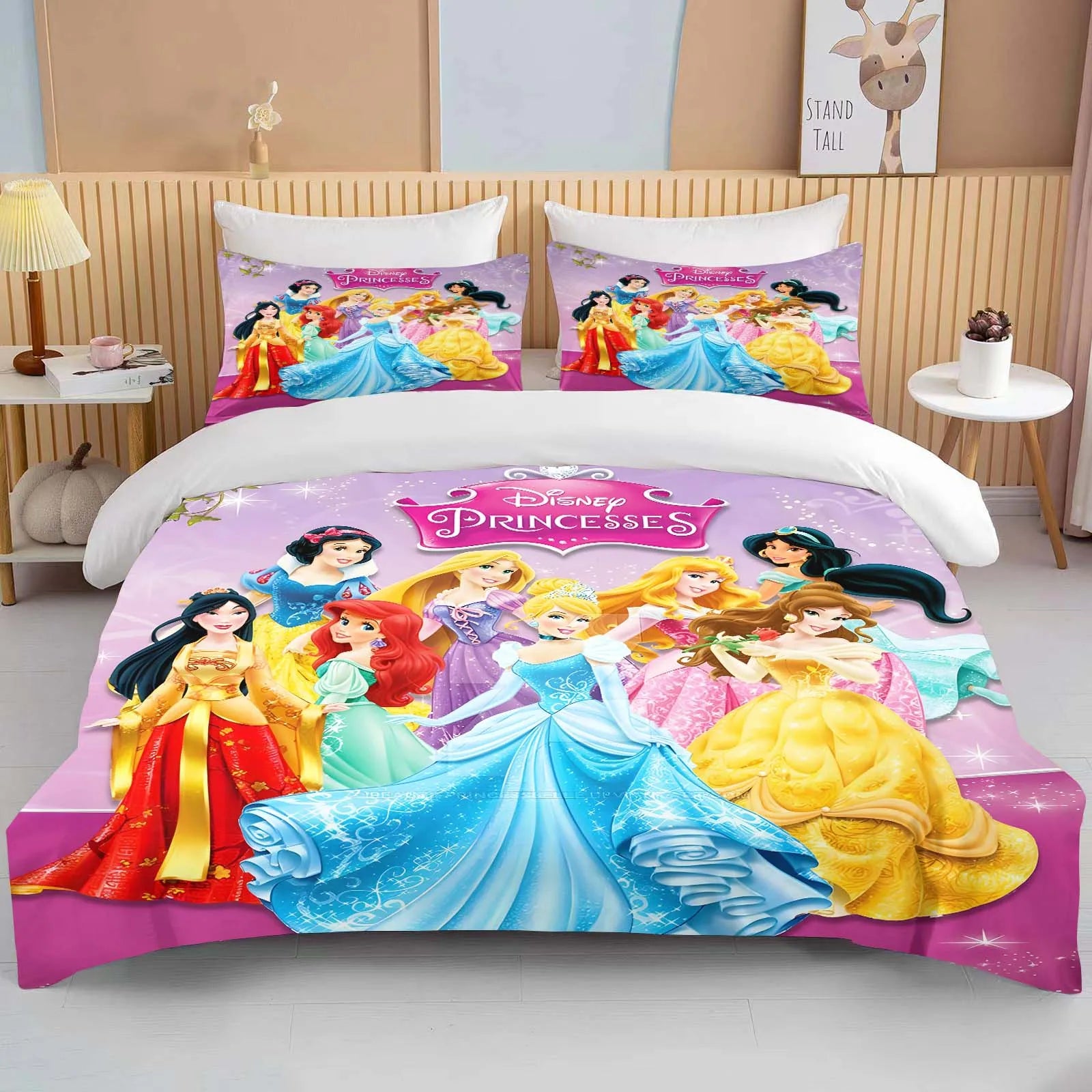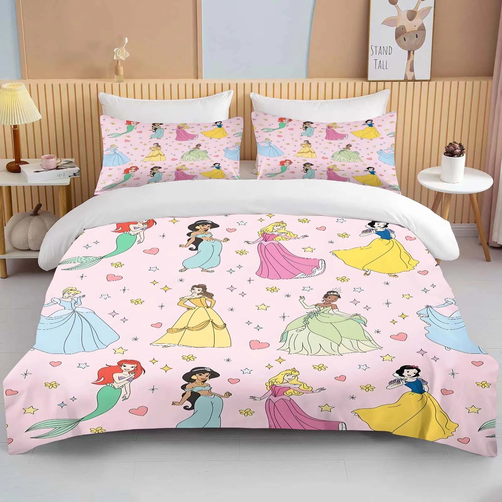 10 Sizes Disney Princess Printed Bedding Set Cartoon Anime Microfiber Bed Set Pillowcase Adult Bed Cover Bedroom Bed Set Duvet
