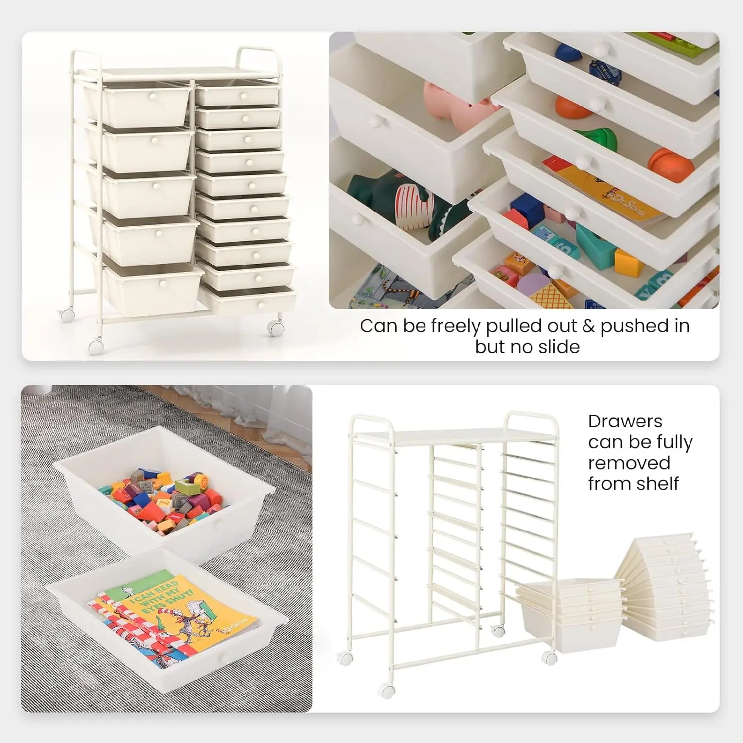- [User-friendly Features]: The sleek handles with round corners make it easy for you to grab and push the 15-drawer cart around. And the drawers are fitted with exquisite & convenient knobs for an easy pull.
