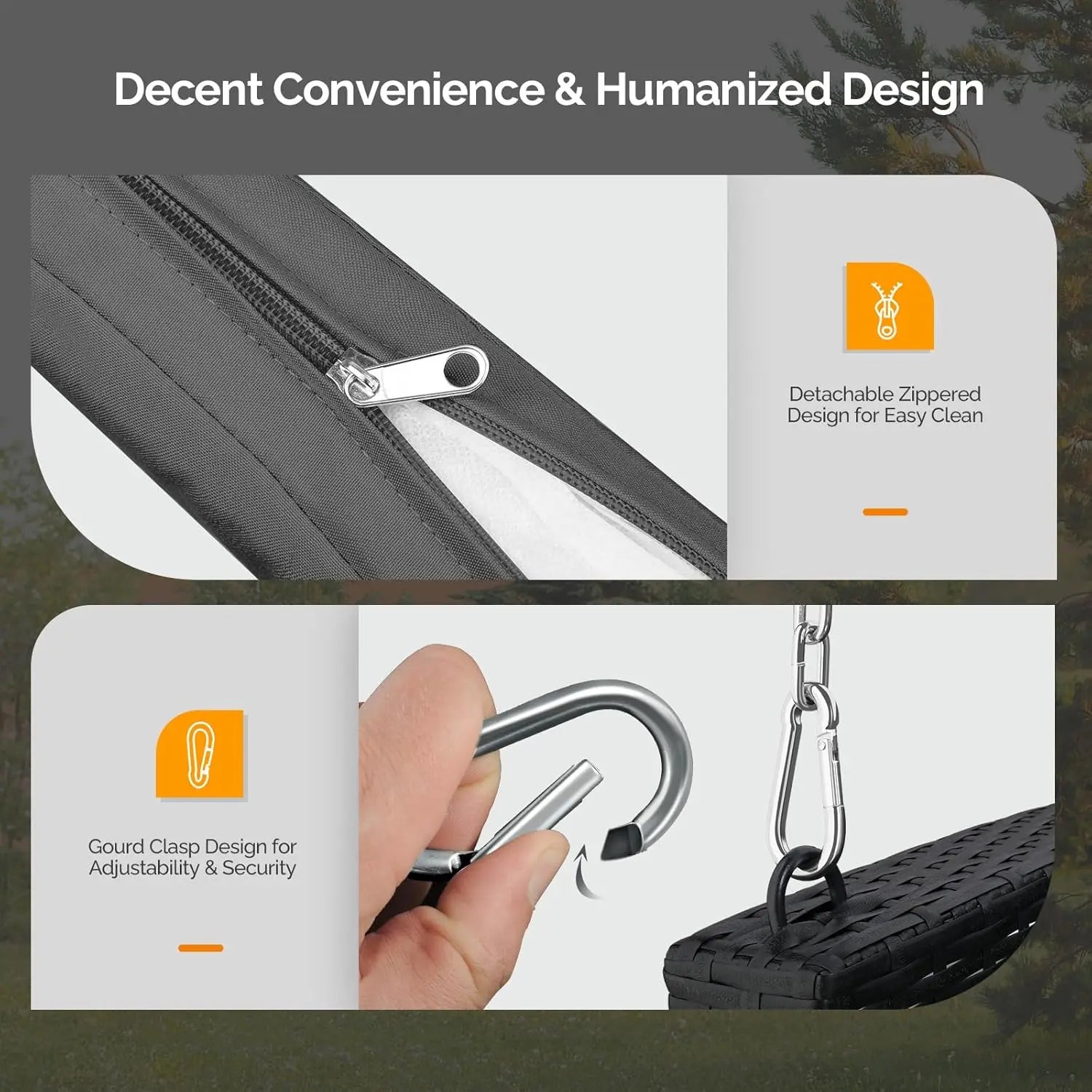 - Cushions Included - Our patio swing have extra soft sponge cushions included in the box. What’s more, the zippered design will make it easy to clean