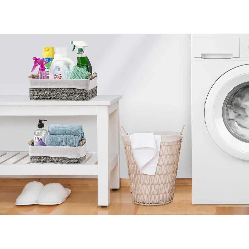 2-Pack Decorative Wicker Storage Baskets Nursery Bedroom Organizers Macrame Lined Paper Rope Compact Design Durable Gift Baskets