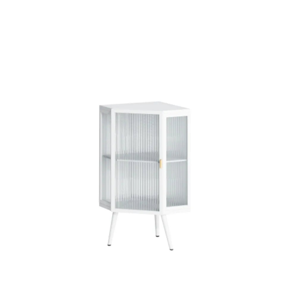 This corner storage cabinet adopts a triangular corner design, which can be placed in the corner to fully utilize the corner space. As a bathroom storage cabinet, it can store toiletries; As a floor to ceiling storage cabinet, it can store clothes, accessories, etc. It is very suitable for placement in bedrooms, bathrooms, living rooms, kitchens, and corners. Single opening glass door design with two storage compartments inside to meet daily usage needs. Modern and elegant design, suitable for most home decoration styles.