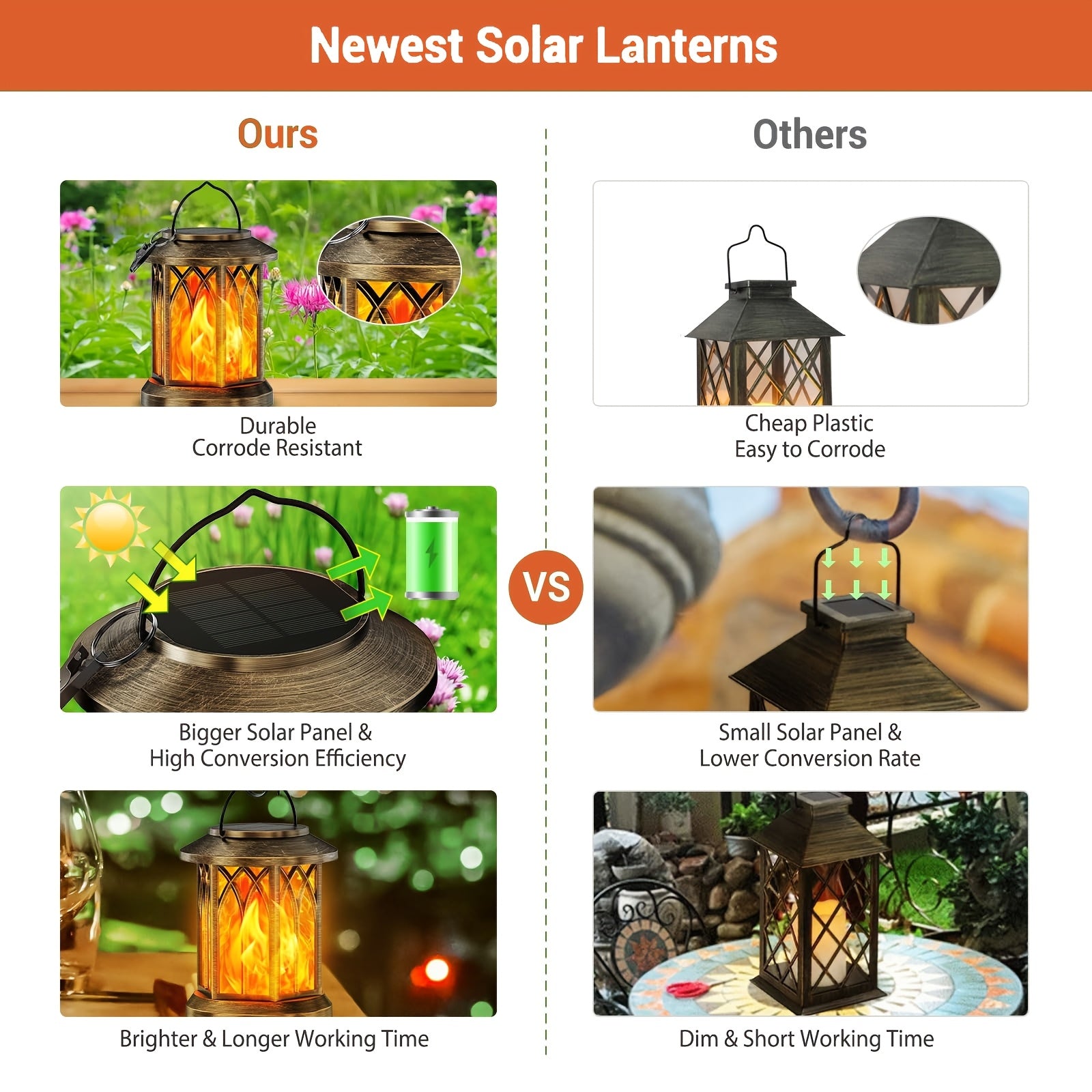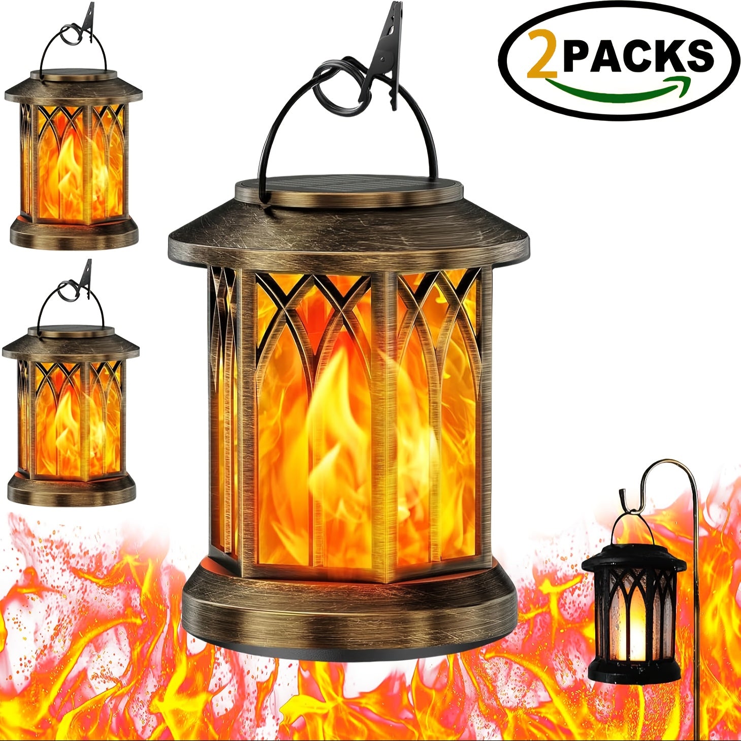 2pcs Solar Lantern Lights Outdoor, Upgraded Flickering Flame Effect,, Hanging Solar Powered Lanterns for Yard and Garden Decor, Black and Bronze, Outdoor Lights