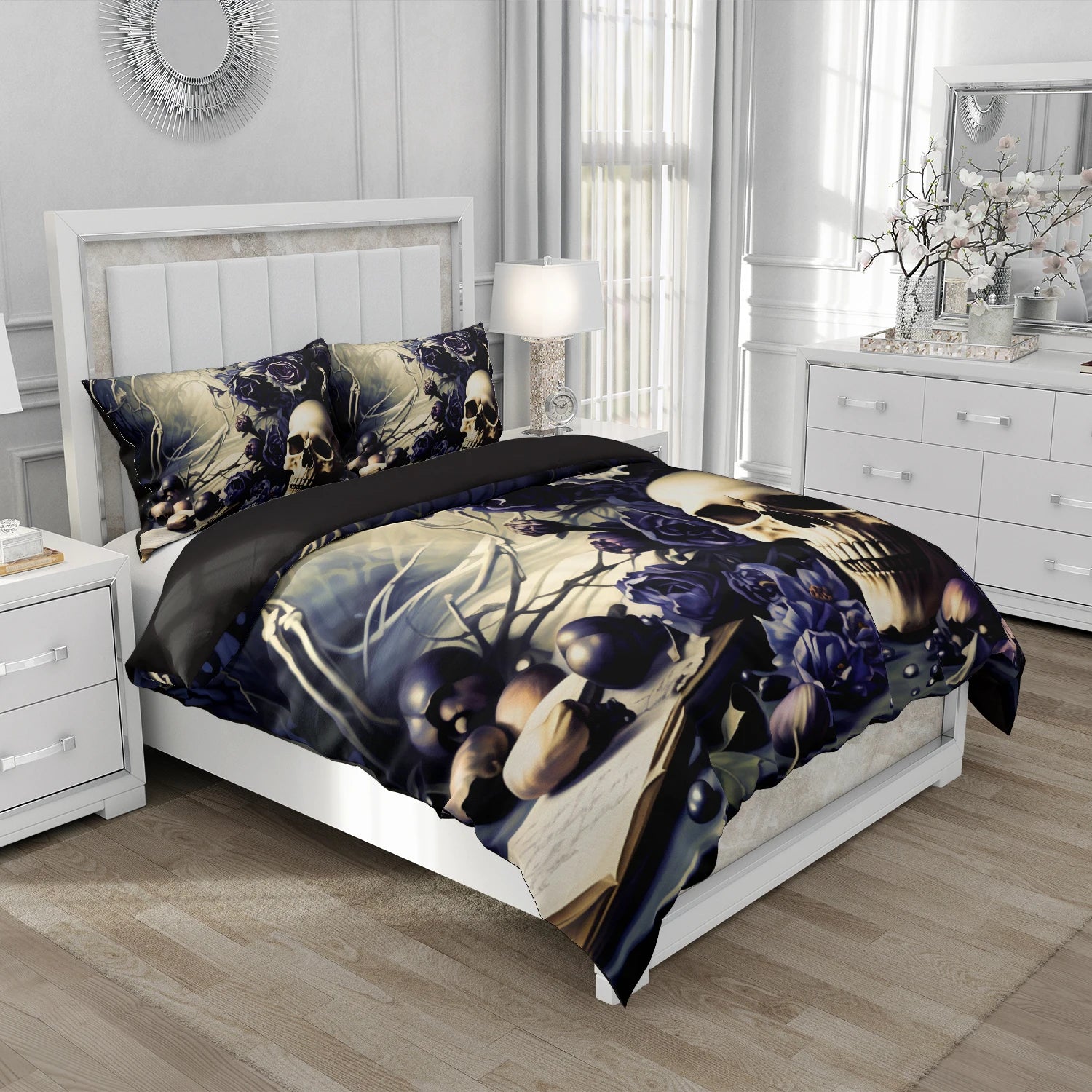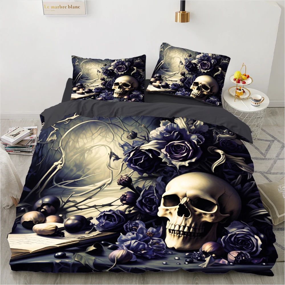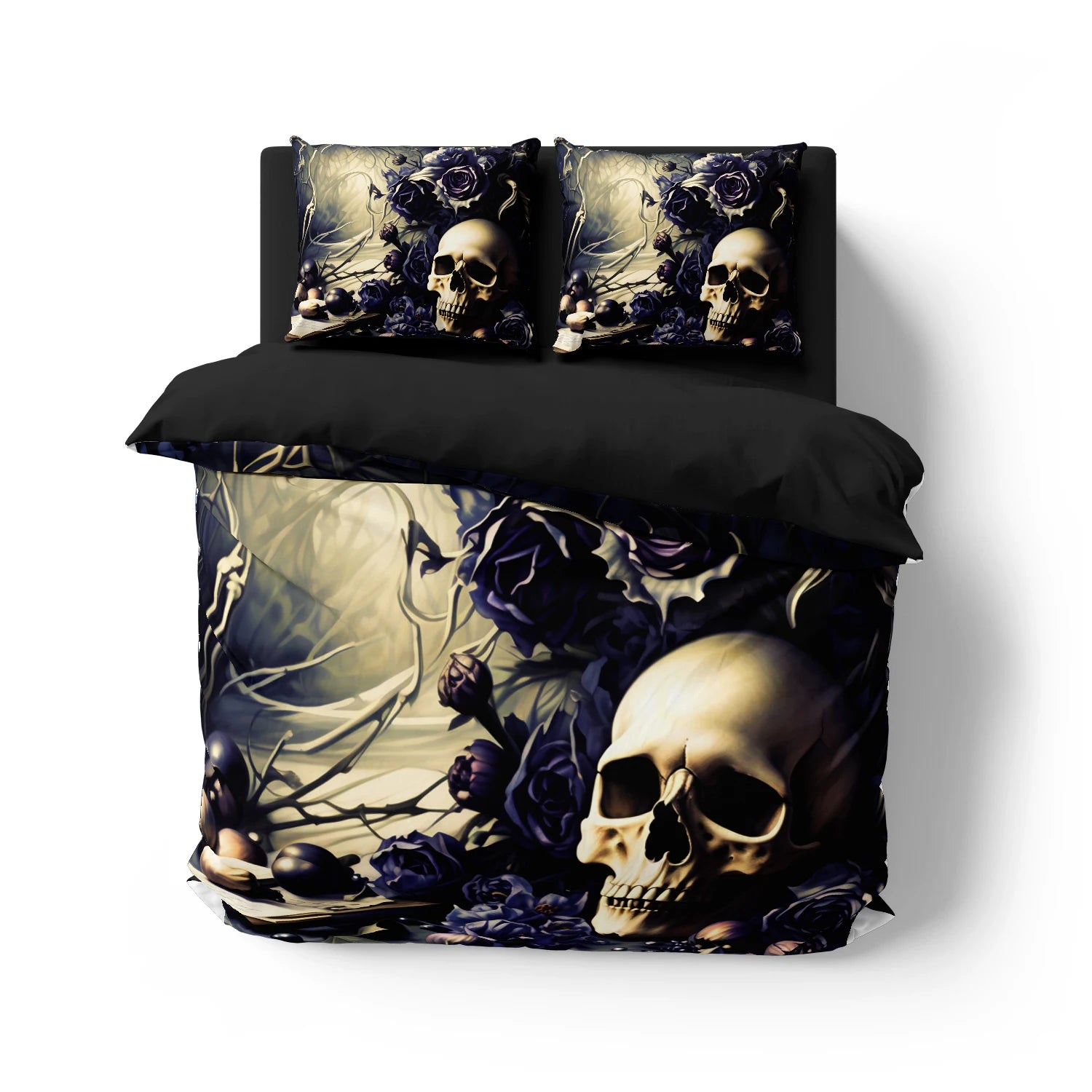 3D Skull Bedding set Duvet/Quilt/Comforter Cover sets human skeleton Bed Linen Halloween King Queen Full Size Gothic Duvet Cover