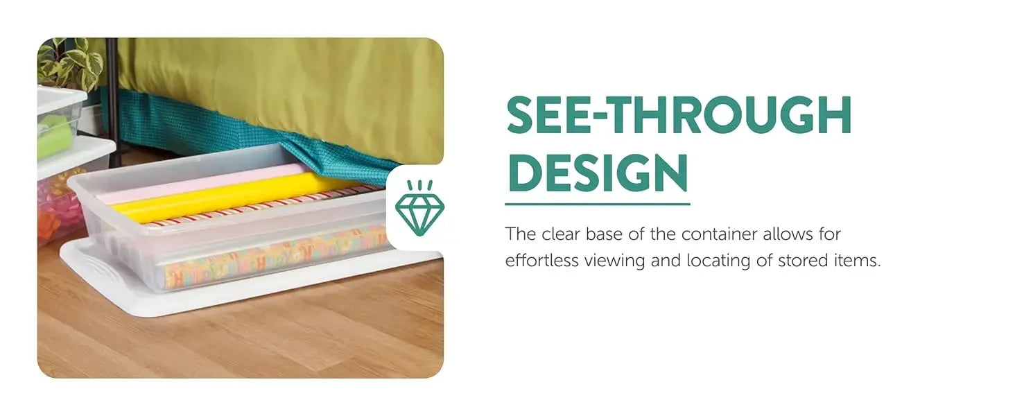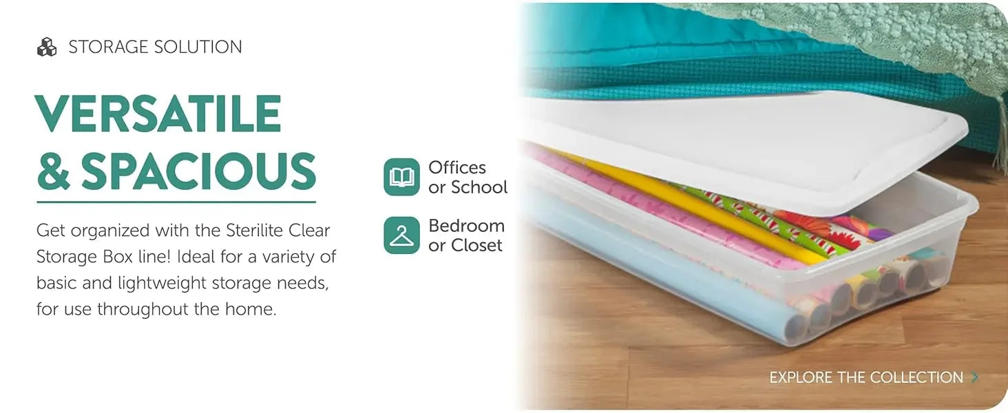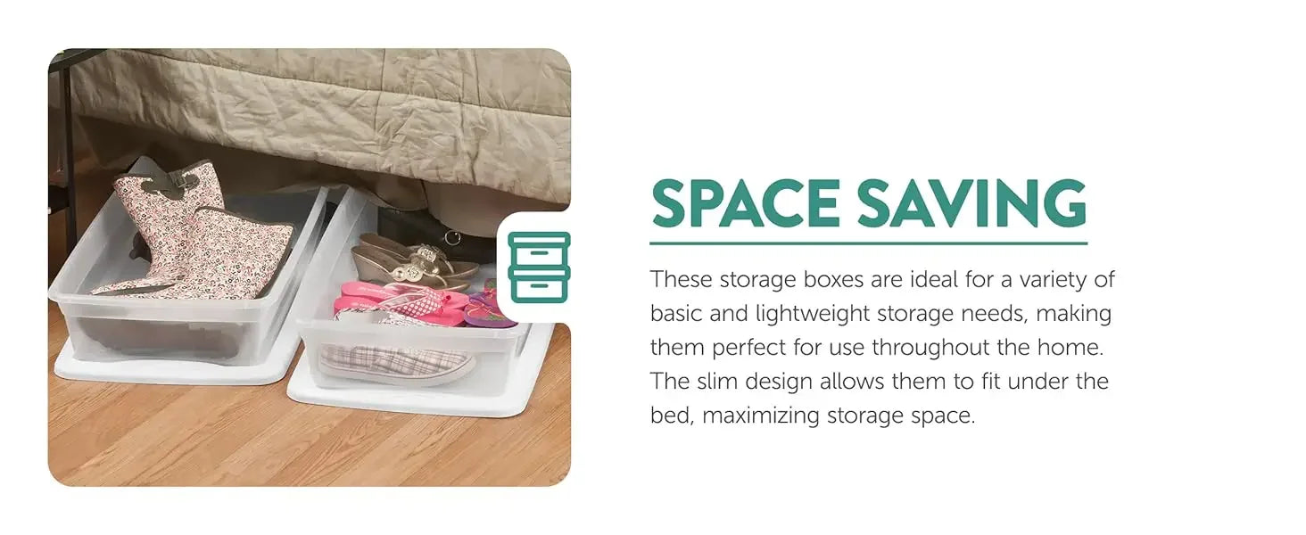 6-Pack Storage Box, Stackable Clear Plastic Bins with Snap-On Lids, 41 Quart - Heavy-Duty Organizing Containers for Closet,