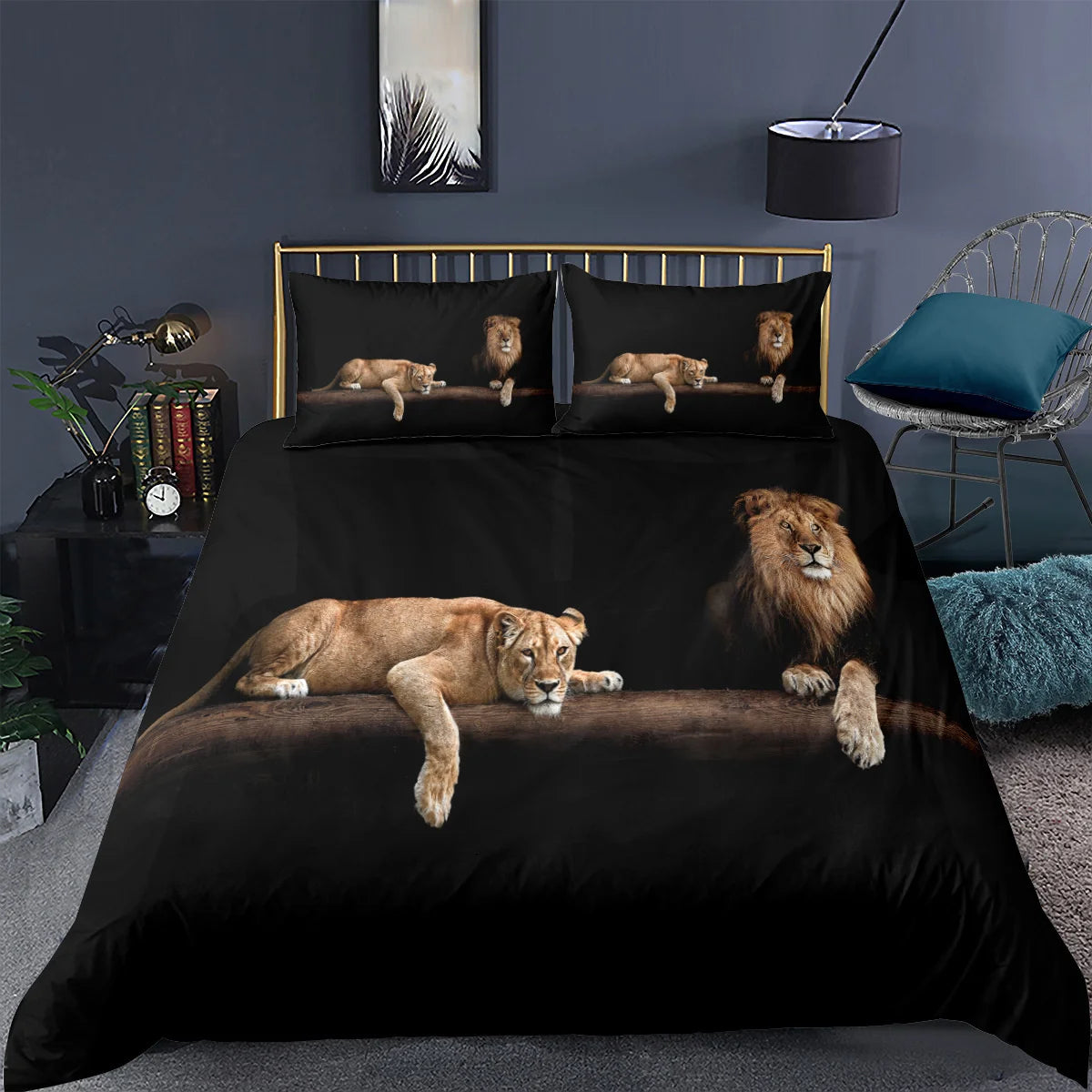 Black Lion Duvet Cover Animal Bed Sheet Pillow Three-Piece Bedding Set Single Double King Queen