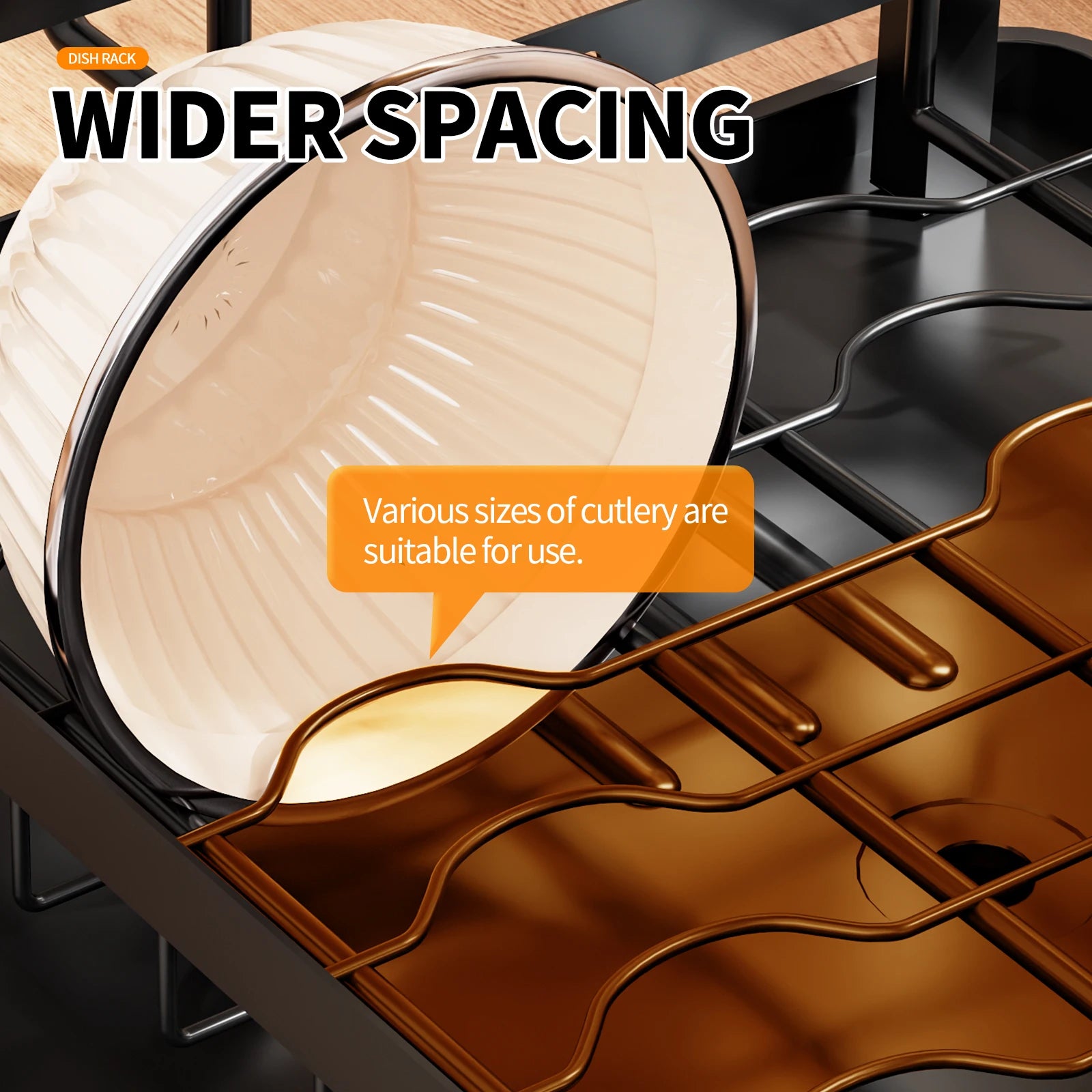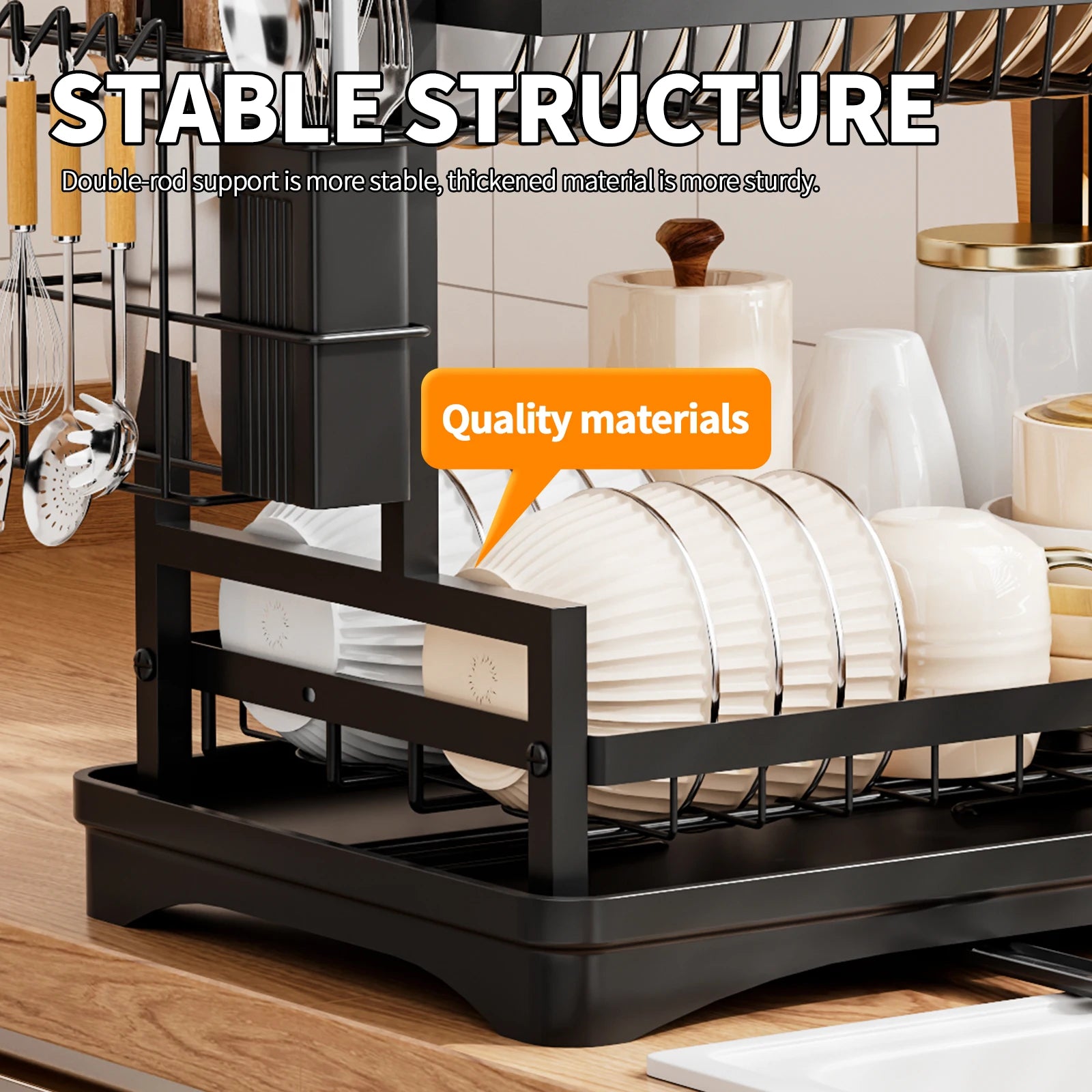 Dish Drying Rack,Kitchen organizers and storage,2-Tier Kitchen Organizers and Storage for Dishes, Bowls, Cutlery, Black