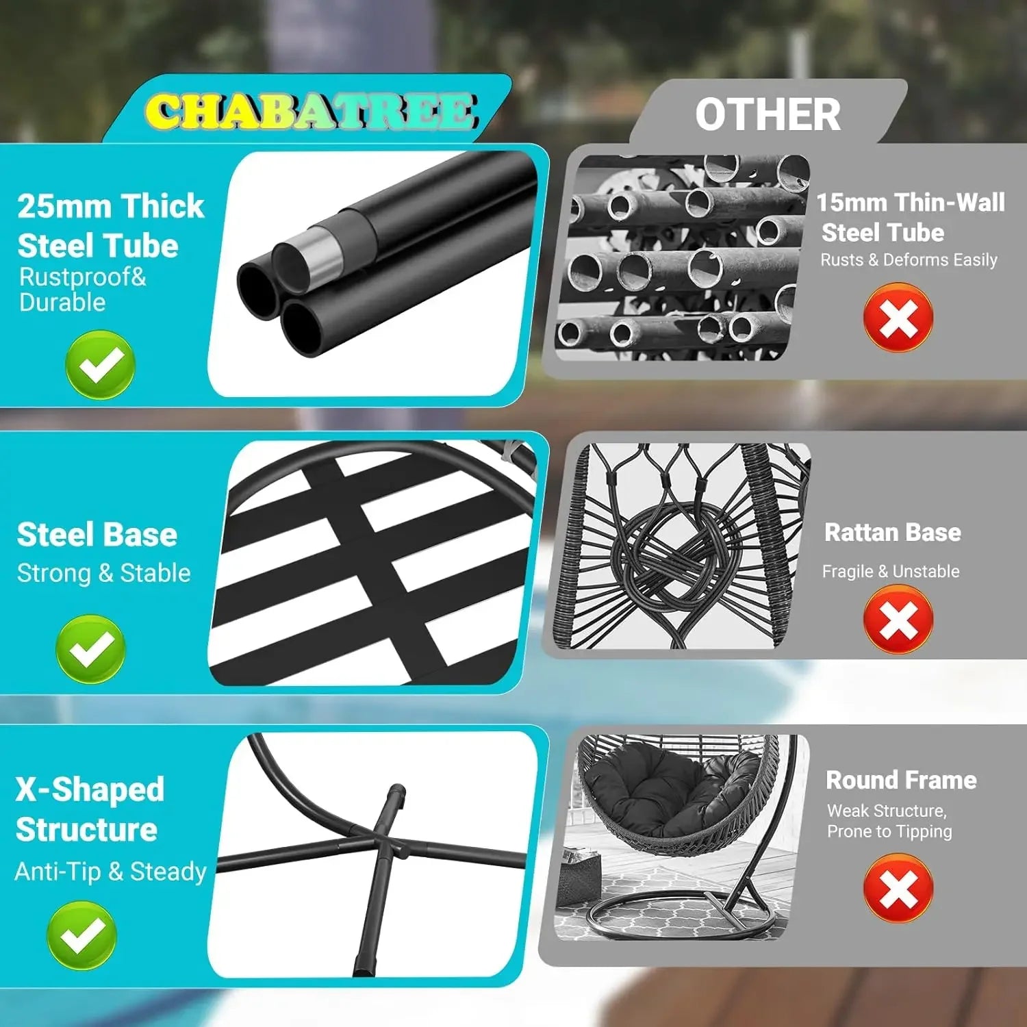 Egg Chair with Stand,Patio Rattan Wicker Hanging Swing Egg Chair Hammock Chair for Bedroom Porch Garden,