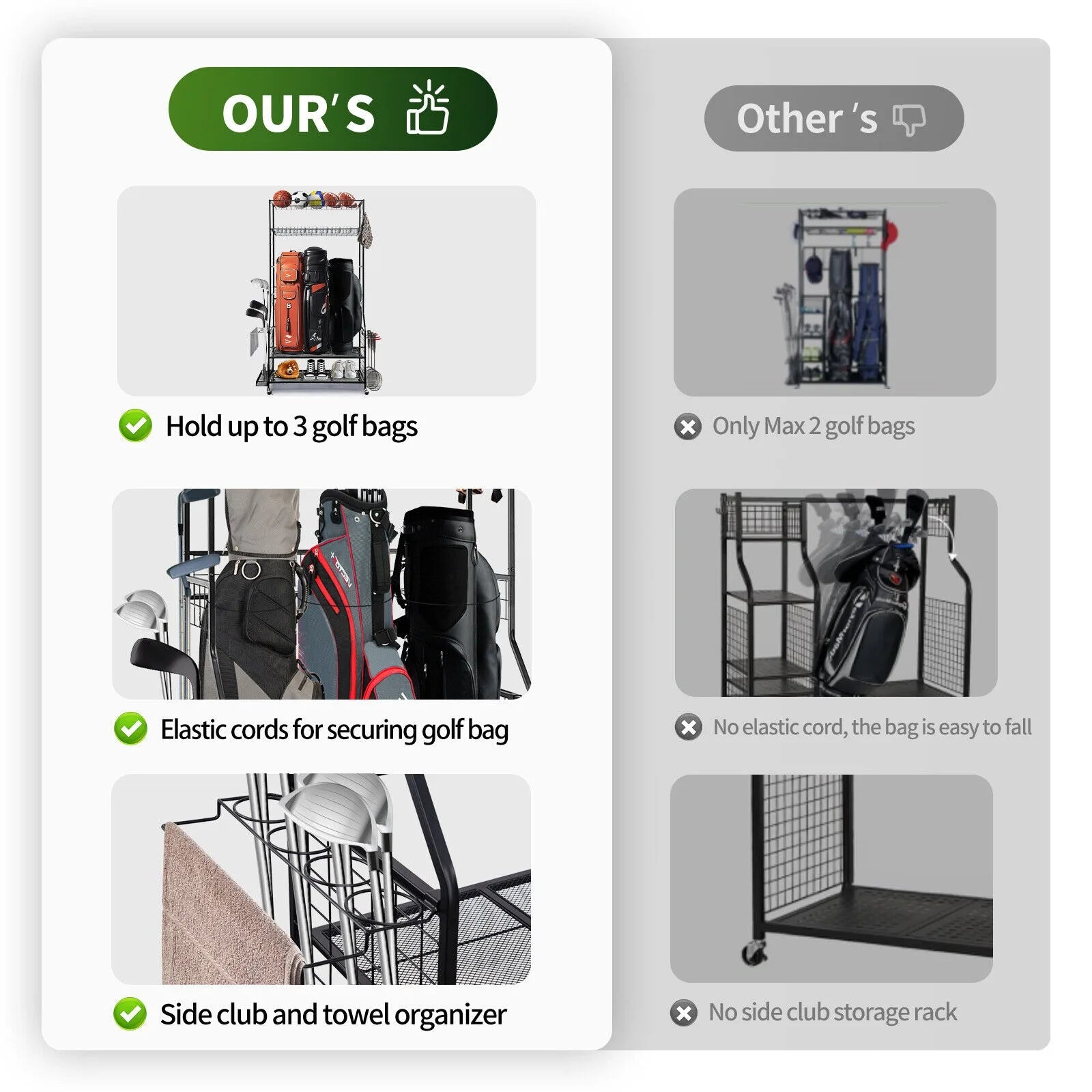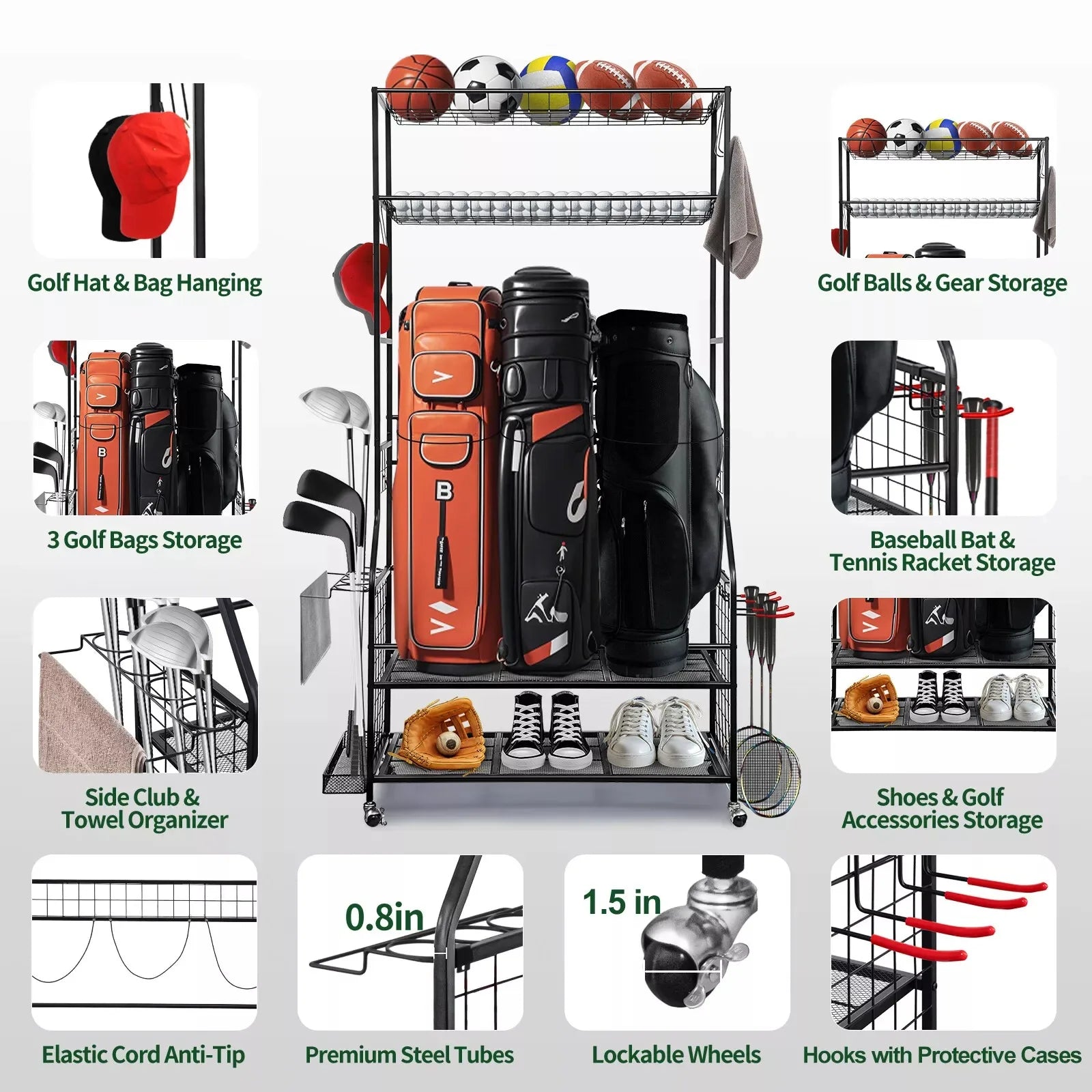 Golf Bag Storage Garage Organizer Fit for 3 Golf Bag Multifunction Home Storage Stand Holder for Sport Equipment organizers Rack