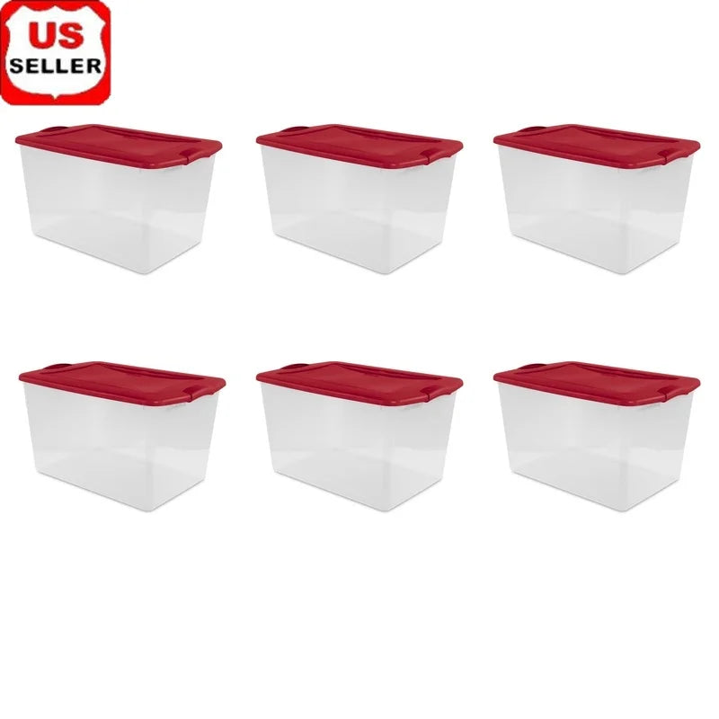 Adult Plastic 66 Qt. Latch Box Infra Red Outside Dimensions: 24" x 16" x 13 7/8" Interior Dimensions at bottom: 19 1/2" x 13 1/8" x 13 1/8" Clear lid and base for easy identification of contents from any angle Contemporary styling and shape to provide solutions to a variety of household storage needs Colorful latches secure lid to base, keeping contents safely stored inside Indexed lids allow for storage boxes to stack neatly on one another BPA-free and phthalate-free