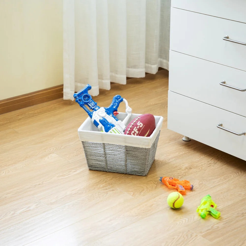 Medium Grey Twisted Paper Rope Storage Basket with Removable Liner Modern Design Cutout Handles Easy Clean Decorative Organizing