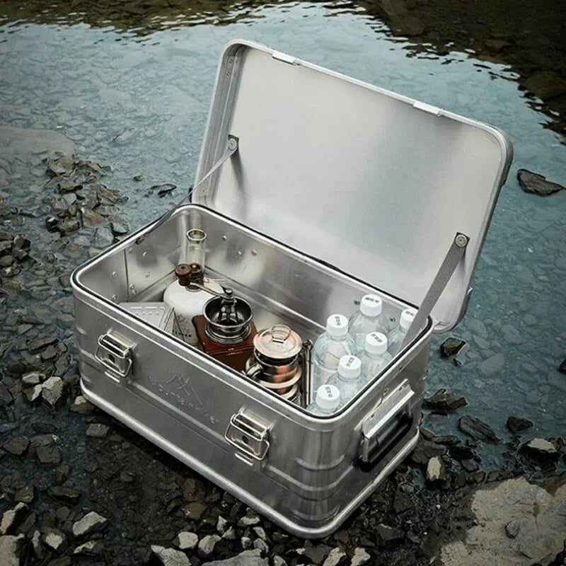 MOUNTAINHIKER Outdoor Storage Box Camping Picnic Travel Aluminum Alloy Large Capacity Box Silver Storage Bag 30-80L