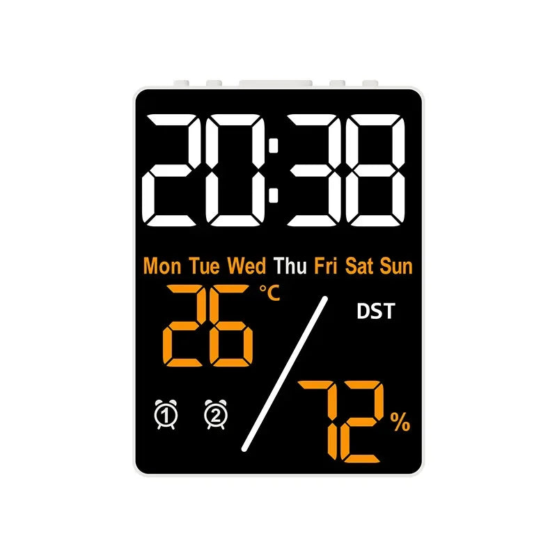 Multifunctional Large Screen Digital Alarm Clock Humidity Display Brightness Adjustment Charging Desktop Clock Home Office Decor
