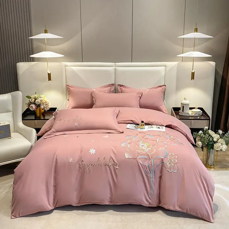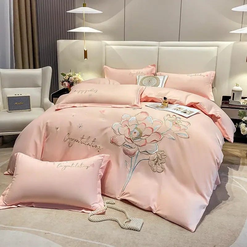 New Class a High Precision Cotton Brushed Embroidery Four-Piece Set Pure Cotton Bed Sheet Duvet Cover