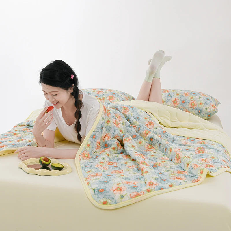 New Printed Cool Feeling Spring Summer Quilt Soft Comfortable Quilted Quilts Single Double Blanket for Bed Comforter Thin Duvet