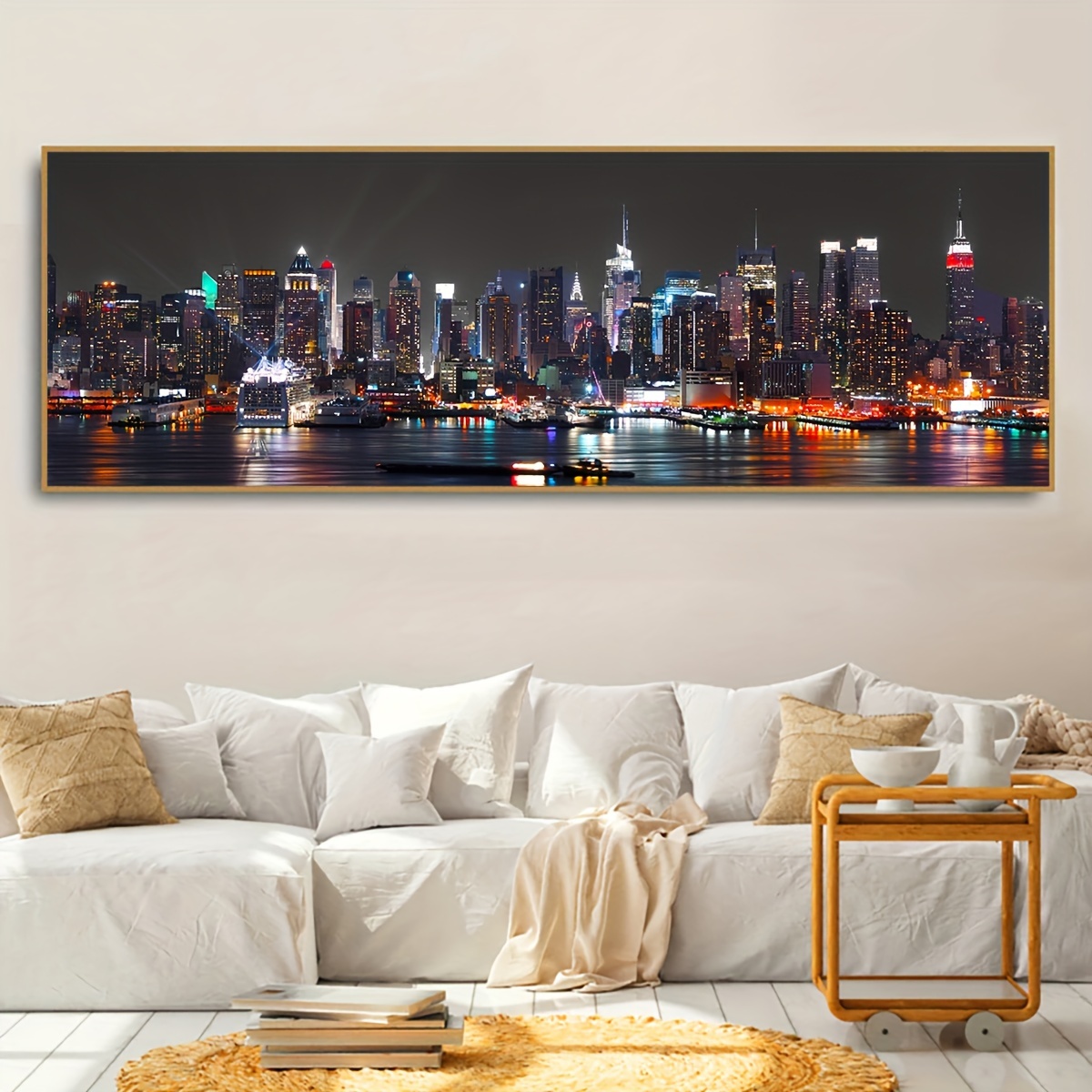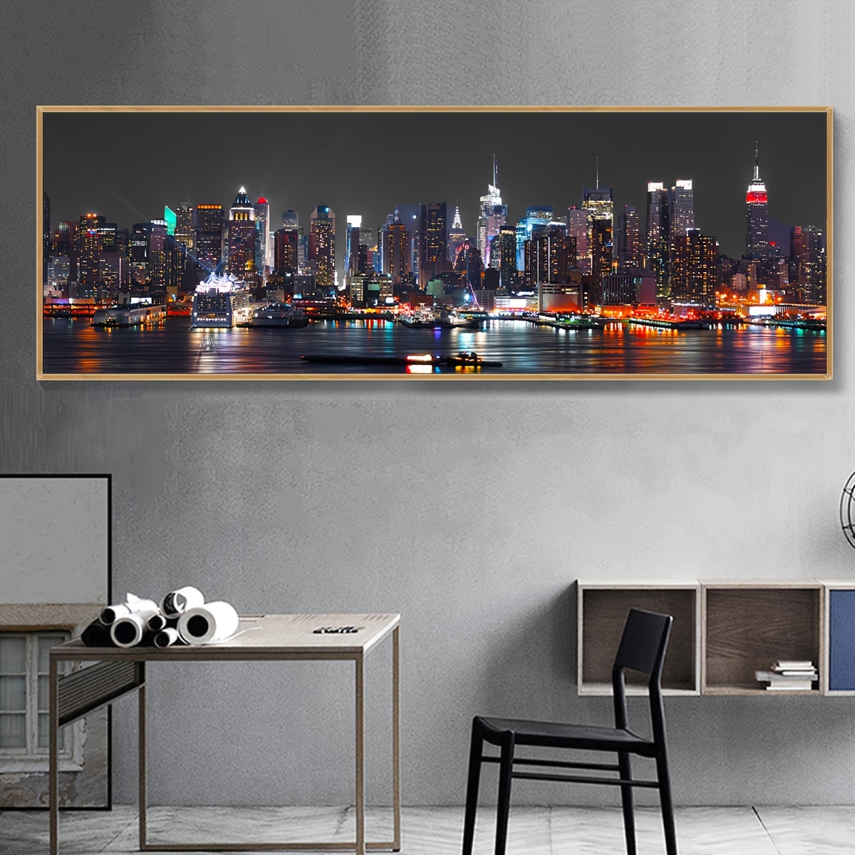 [Odorless Canvas Art Poster] Waterproof & Odorless Urban Riverside Night View Canvas Art Poster - Chic Wall Decor for Living Room, Bedroom, Office - Perfect Gift Idea