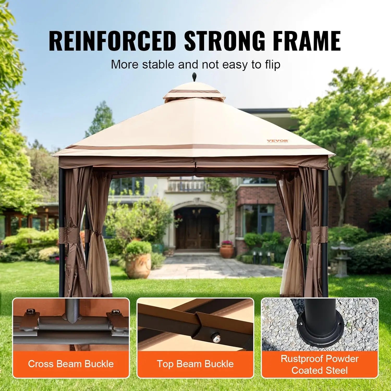 Patio Gazebo for 10-12 Person, 10 x 13 FT Backyard Gazebo, with Mosquito Netting, Metal Frame, and PU Coated 180G Polyester