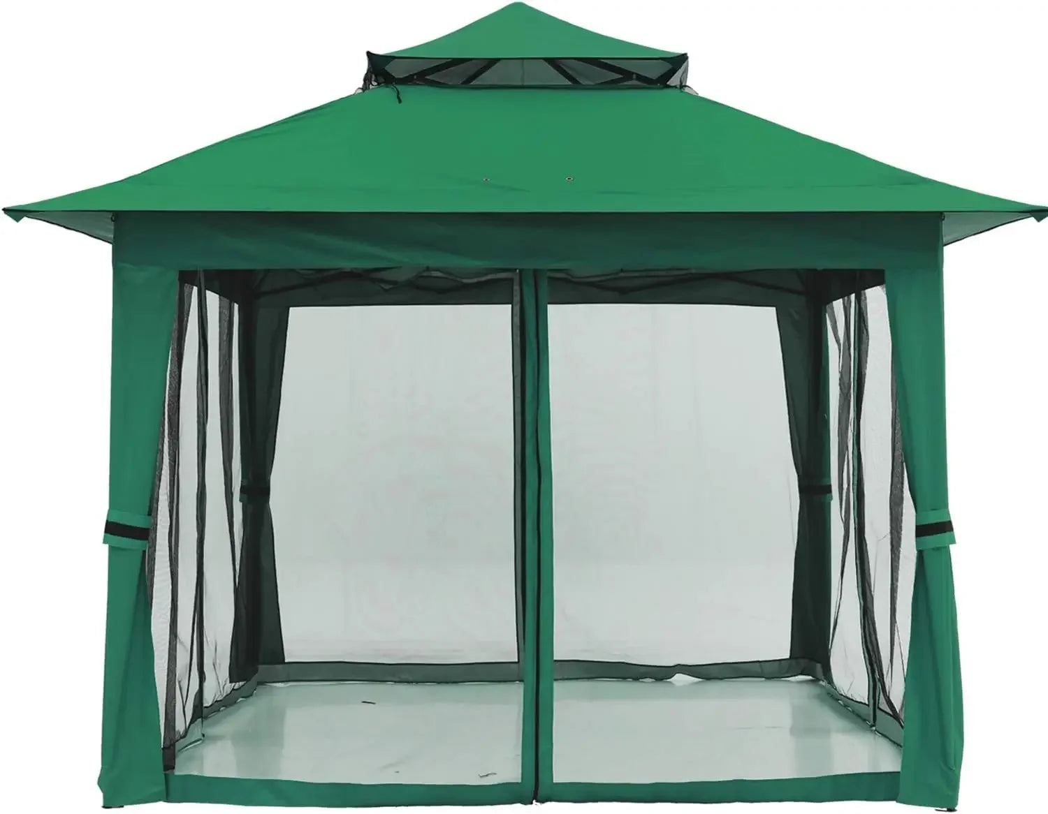 Patio Gazebo Outdoor Pop Up Gazebo with Mesh Walls (Forest Green, 13x13)