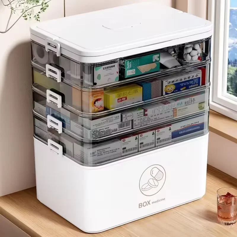 Portable Medicine Box Large Capacity Home First Aid Medical Kit Family Emergency Medicine Box with Multi-layer Drug Storage Case