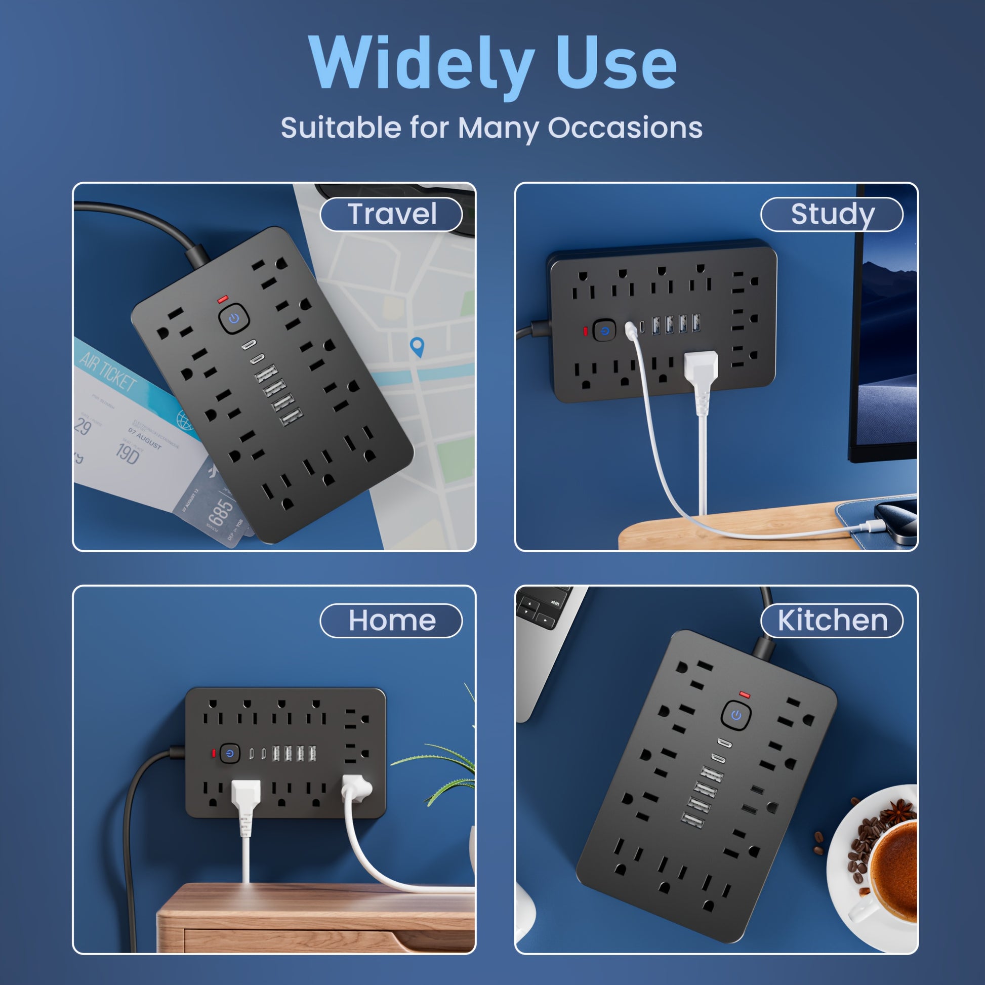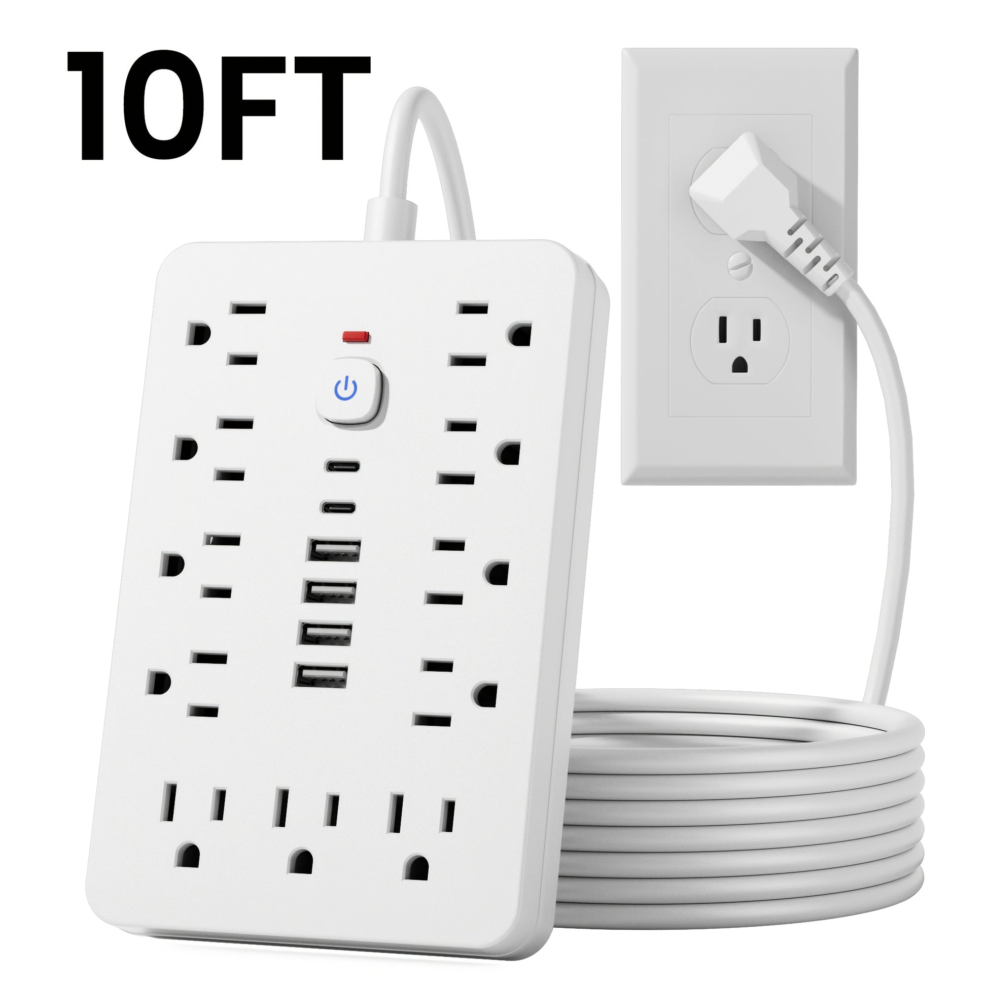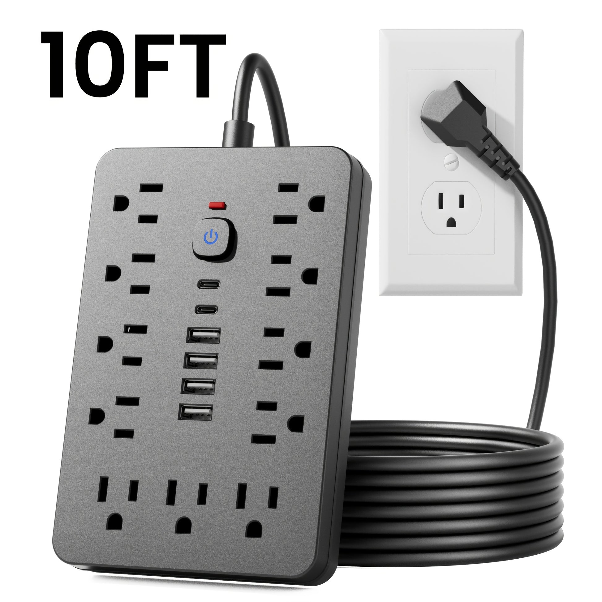 [Power Hub] 1pcWith 11 Individual Power Outlets, 5ft/10ft, 4 USB and 2 USB-C Ports, Flat Plug, Wall Mountable, Overload Protected Power Hub for Home, Office, Awesome Christmas, New Year's and birthday gifts!