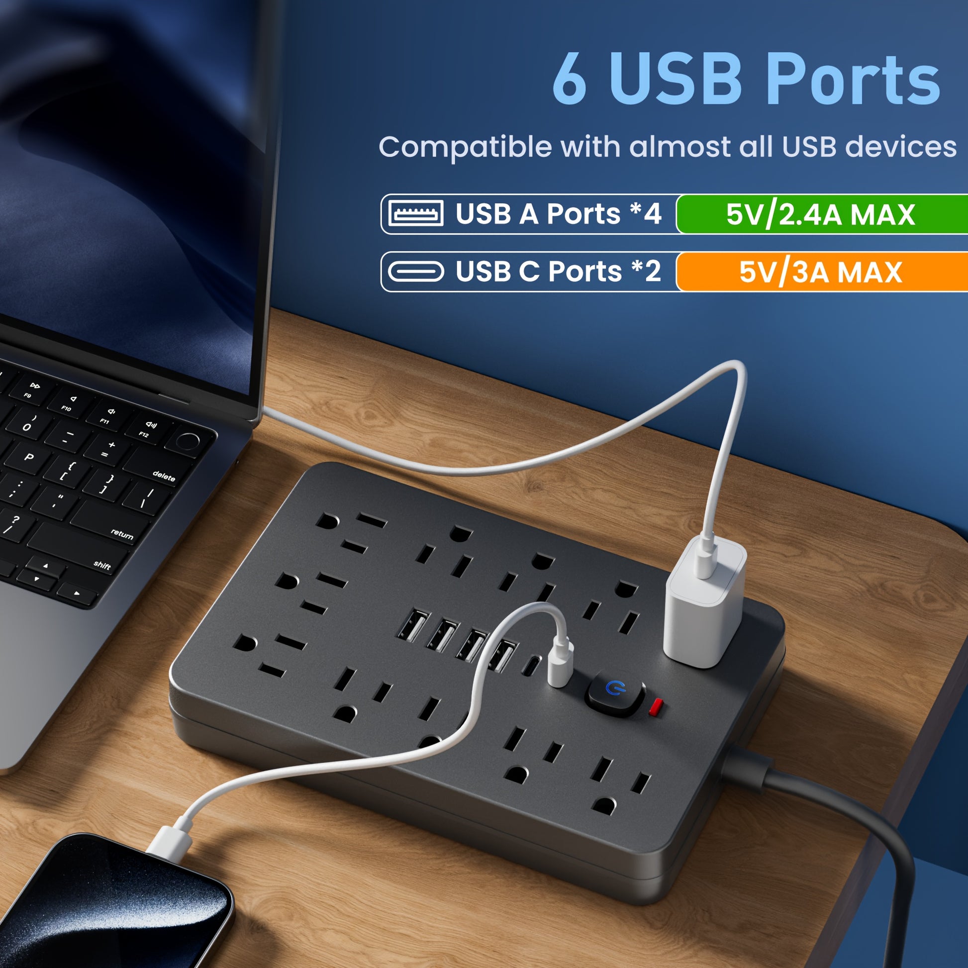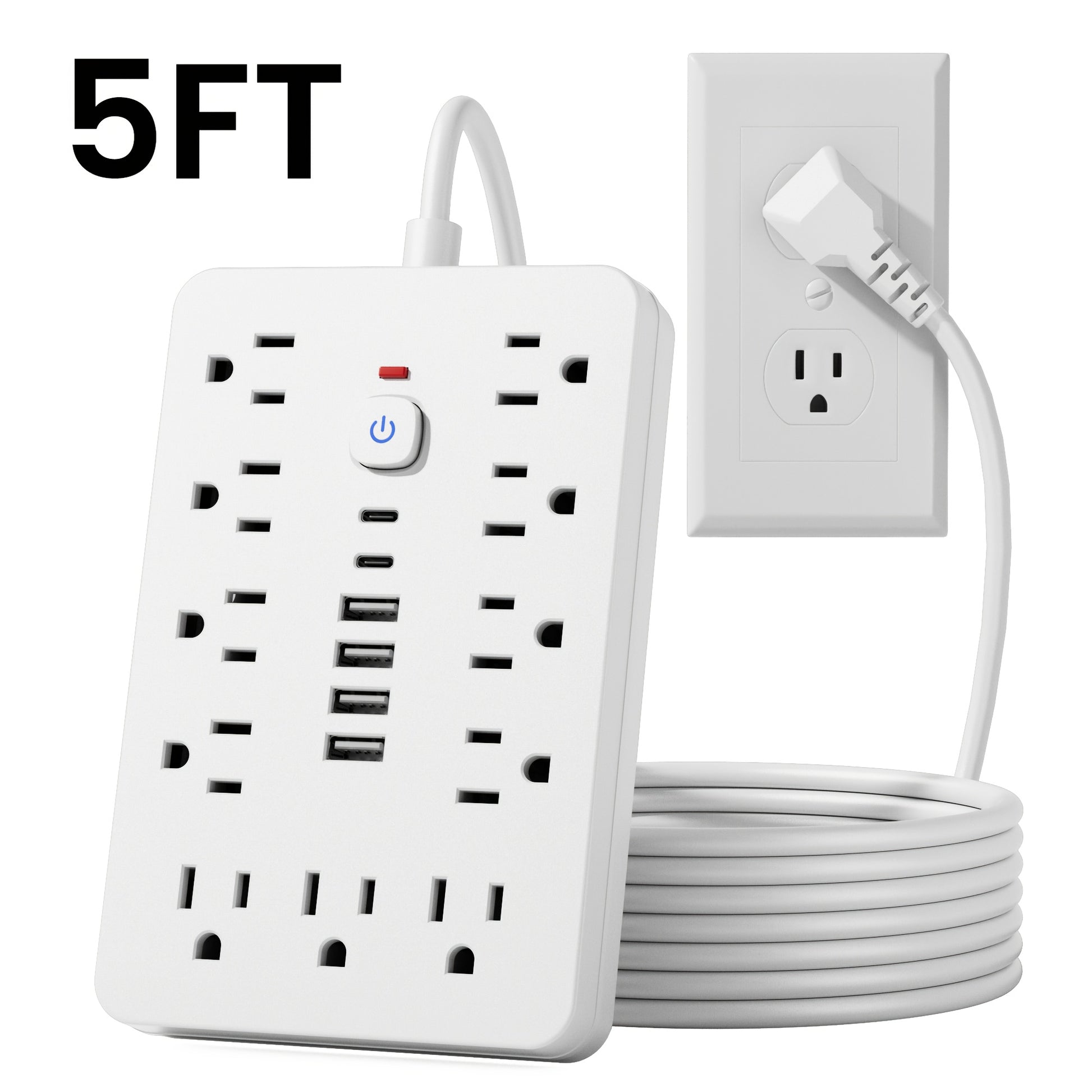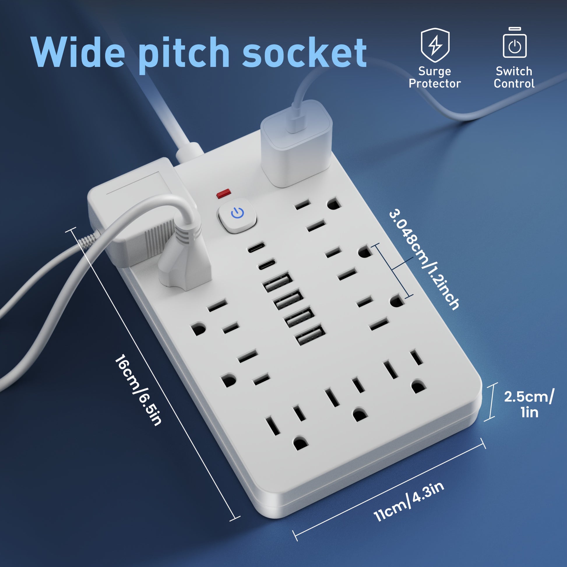[Power Hub] 1pcWith 11 Individual Power Outlets, 5ft/10ft, 4 USB and 2 USB-C Ports, Flat Plug, Wall Mountable, Overload Protected Power Hub for Home, Office, Awesome Christmas, New Year's and birthday gifts!