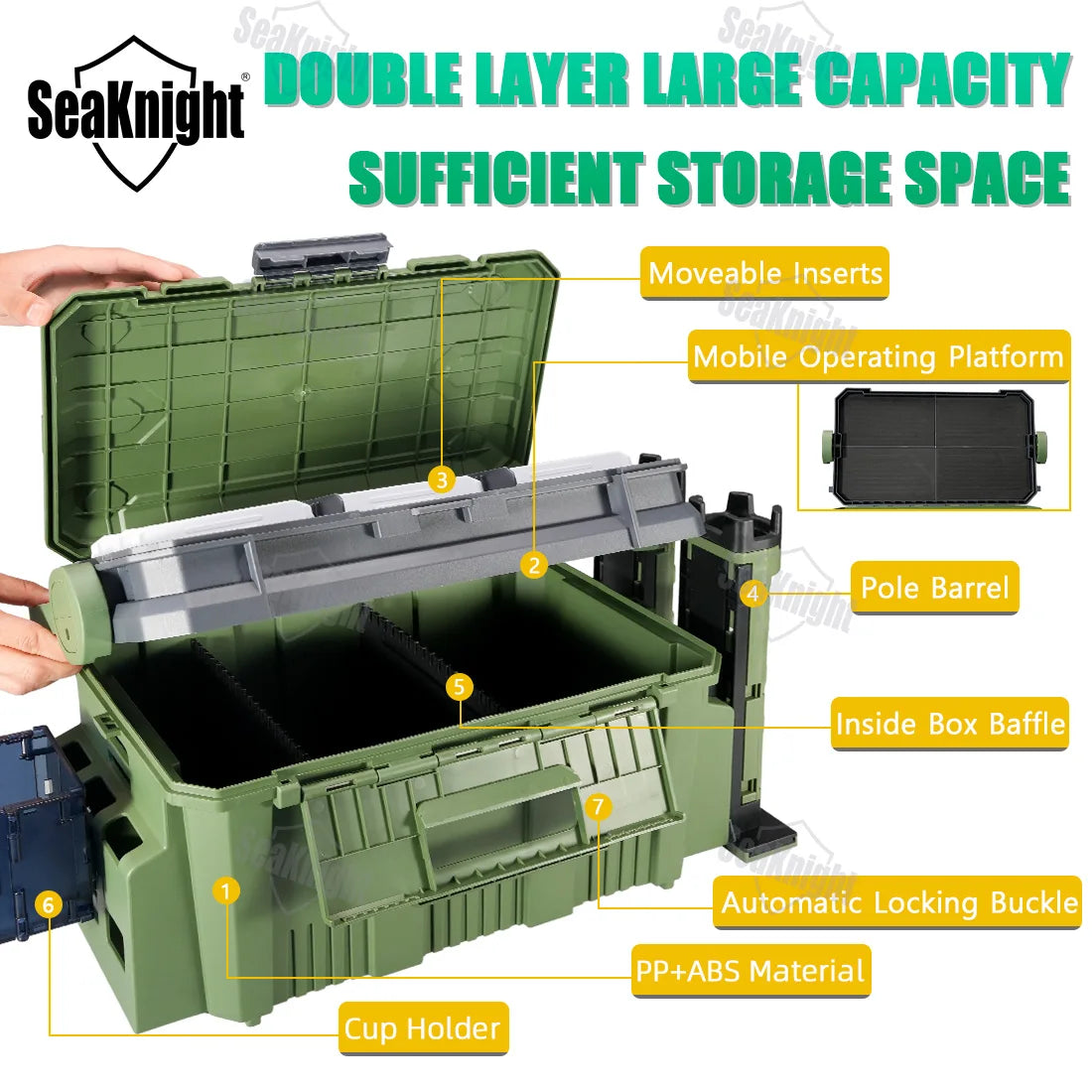 SeaKnight Brand 20L Fishing Tackle Box SK05 Double Layer Large Capacity Hard Fishing Storage Box Multifunctional Case Rod Holder