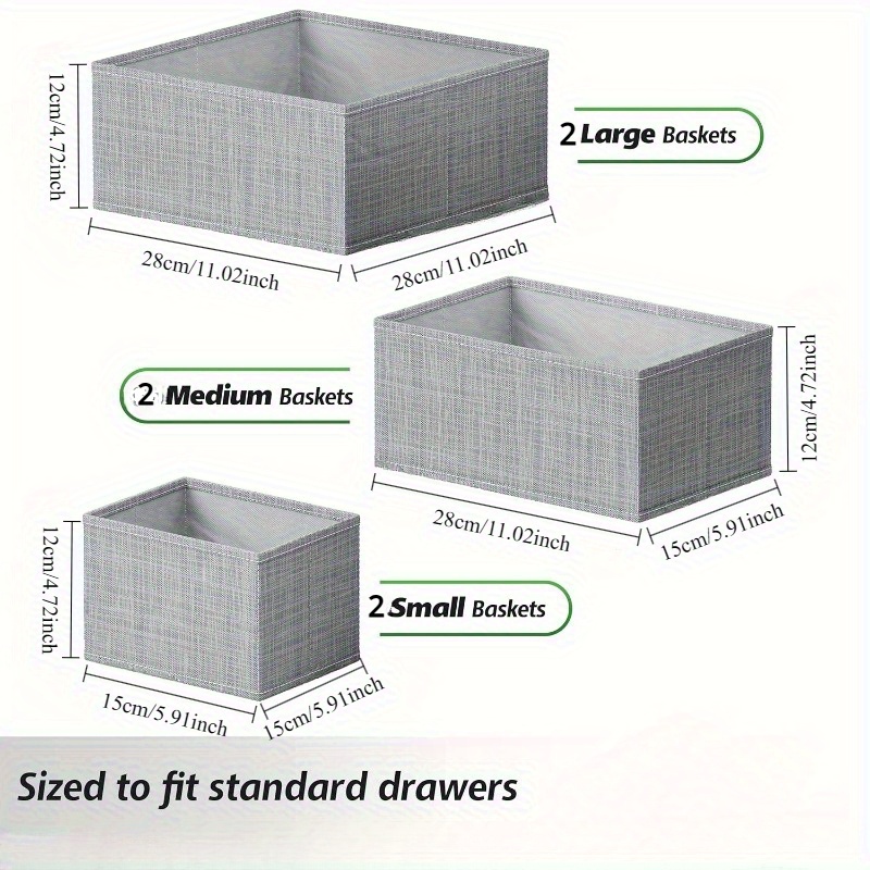 Set of 6 Non-Woven Fabric Clothes Drawer Organizer Bins - and Bedroom Dresser Storage for s Clothing - Hand Washable Professional Organizer for Closet and Dresser, Clothes Organizer Storage