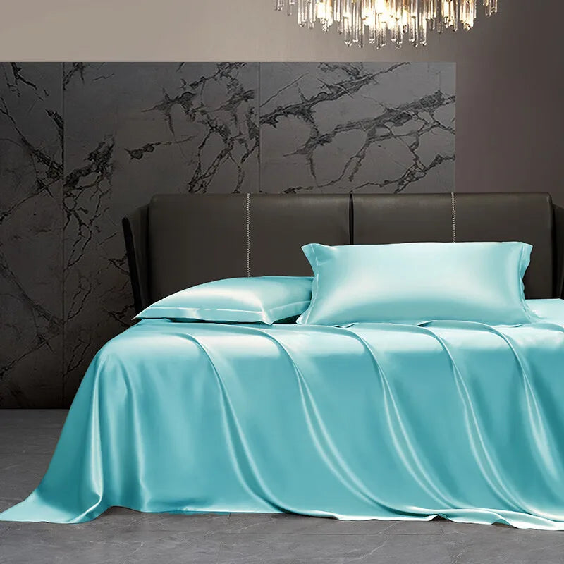 Solid 4pcs Silk Bedding Set with Duvet Cover Fitted/Flat Bed Sheet Pillowcase Bedspreads and Coverlets Single Double Bedsheet