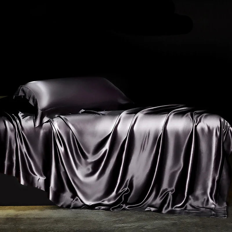 Solid 4pcs Silk Bedding Set with Duvet Cover Fitted/Flat Bed Sheet Pillowcase Bedspreads and Coverlets Single Double Bedsheet