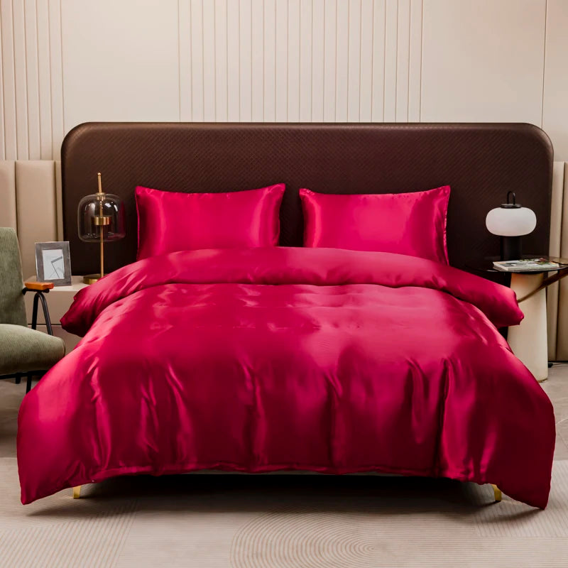 Solid Satin Bedding Set Including Duvet Covers, Bed Sheets, Pillowcases 220x240cm, Free Shipping