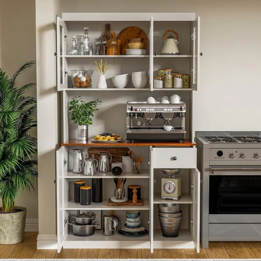Tall Kitchen Pantry Cabinet with Microwave Shelf, Modern Large Freestanding Sideboard Cupboard Kitchen Hutch Cabinet