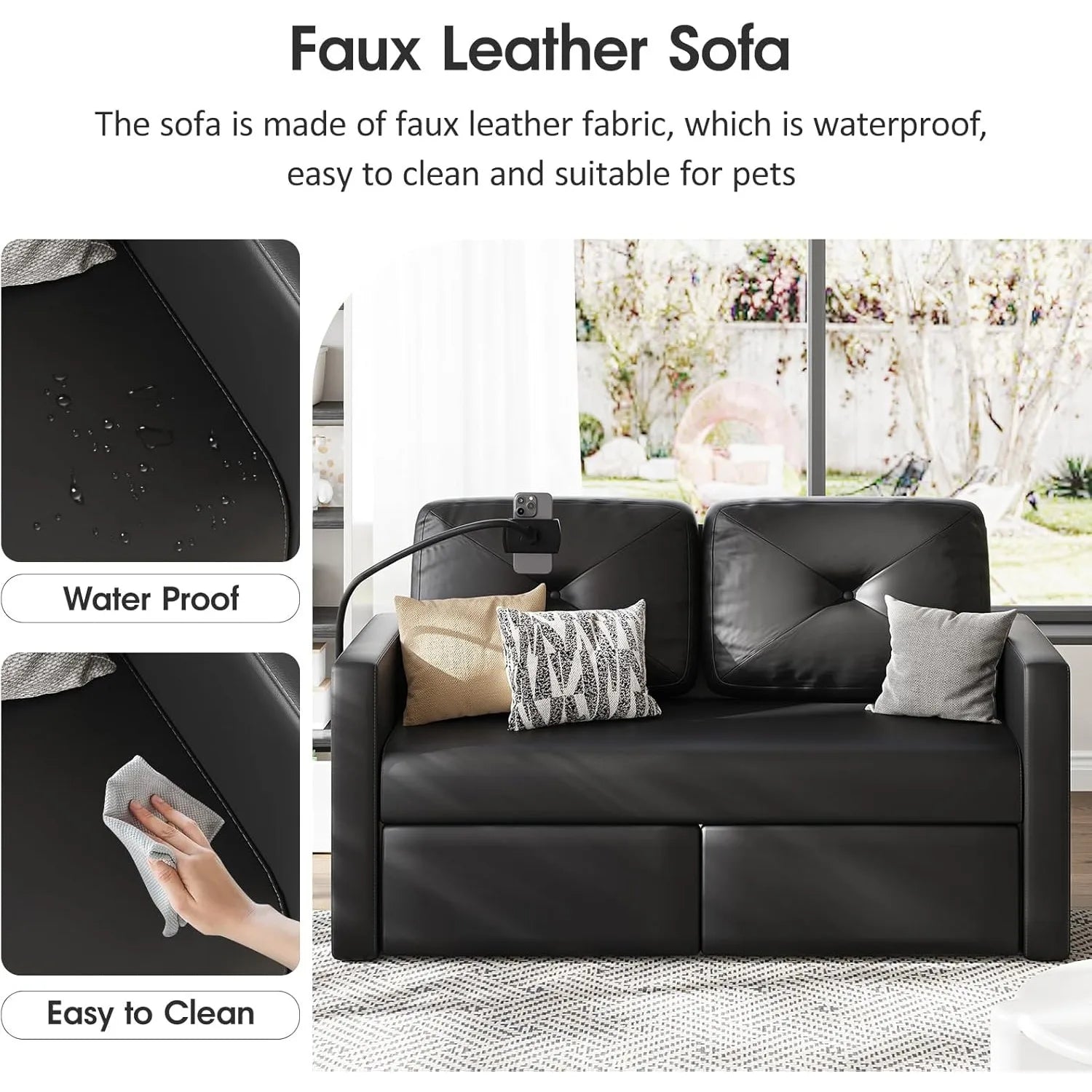 【Safe & Comfy】: Our this leather couch is made from high quality soft faux leather, the material used is safe and odourless and features comfortable serpentine sprung seat cushions. Maintenance is very easy, simply wipe away dirt with water