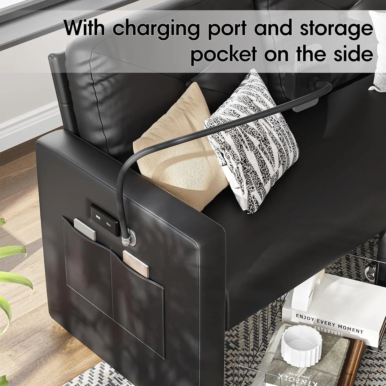 And there are also two storage pocket on each of the sofa side for conveniently storing your magazines and books