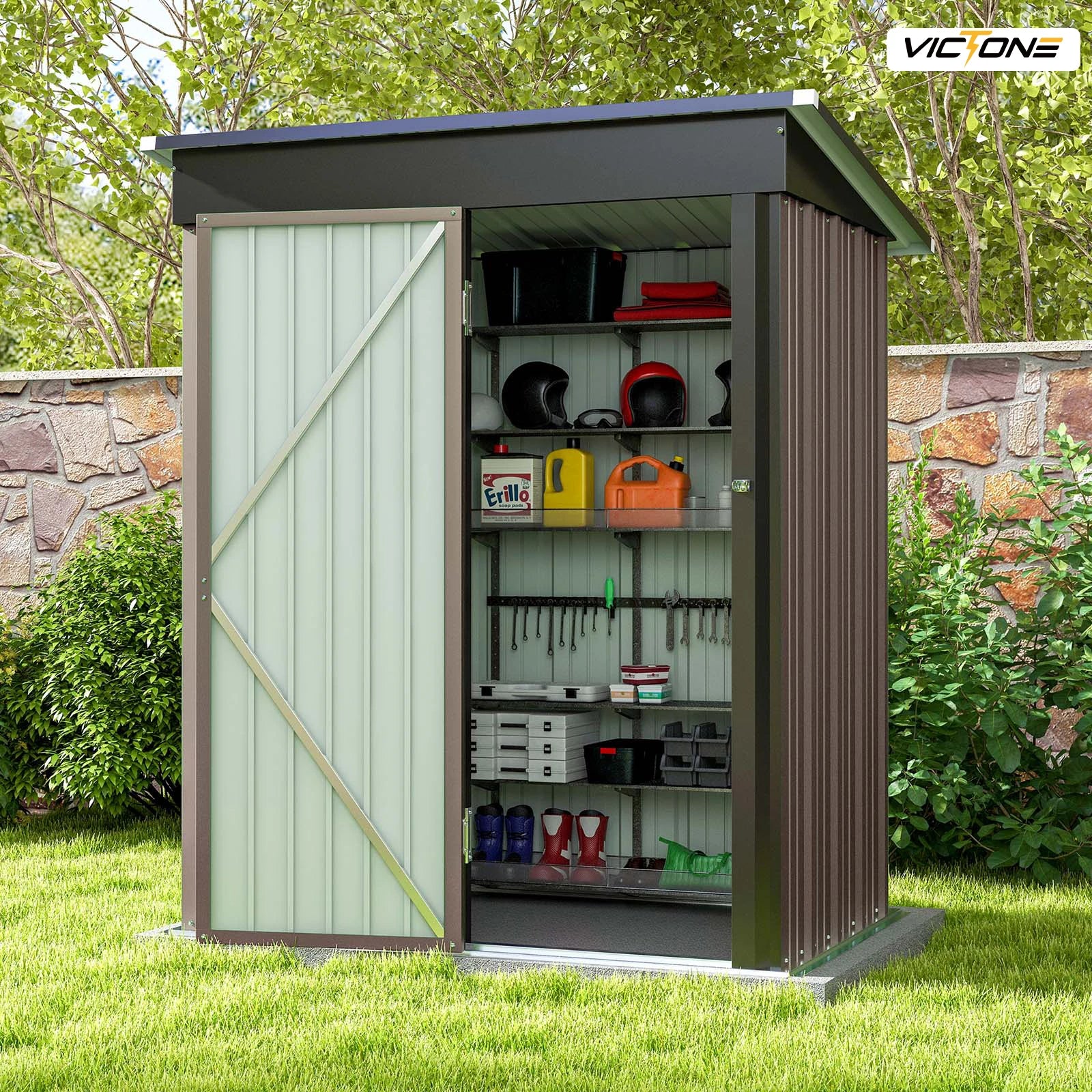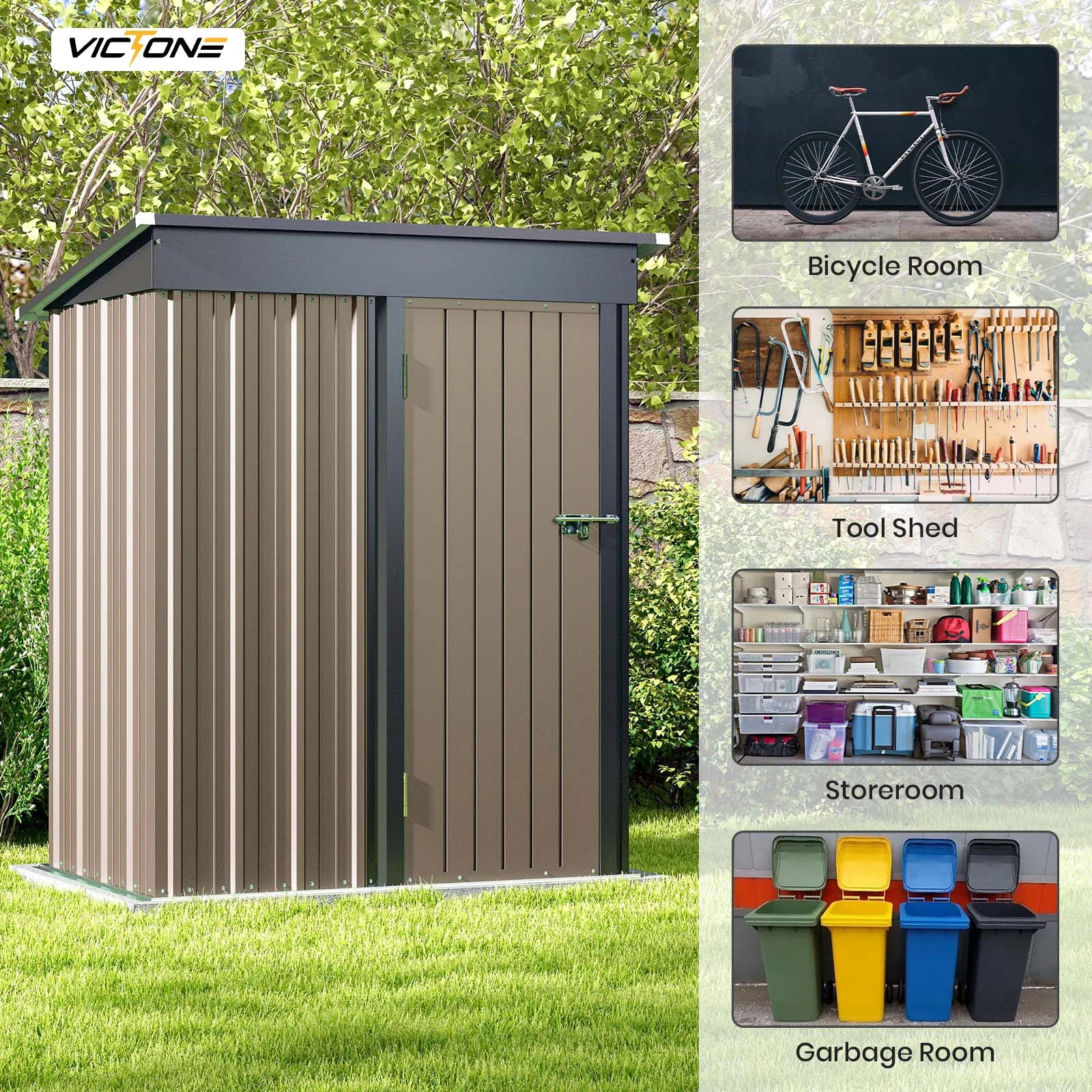 Victone 5x3 FT Outdoor Storage Shed, Tool Shed with Sloping Roof and Lockable Door, Metal Shed for Backyard Garden Patio Lawn